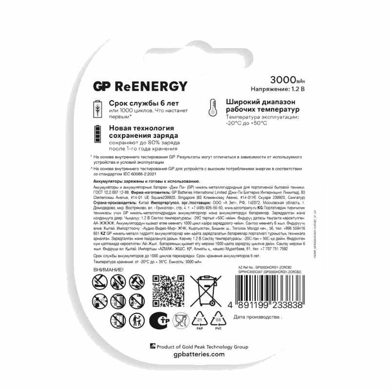 Никель Металлогидридные Ni-Mh аккумуляторы с емкостью 3000 мА ч. предназначены для более продолжительной работоспособности Ваших электроприборах