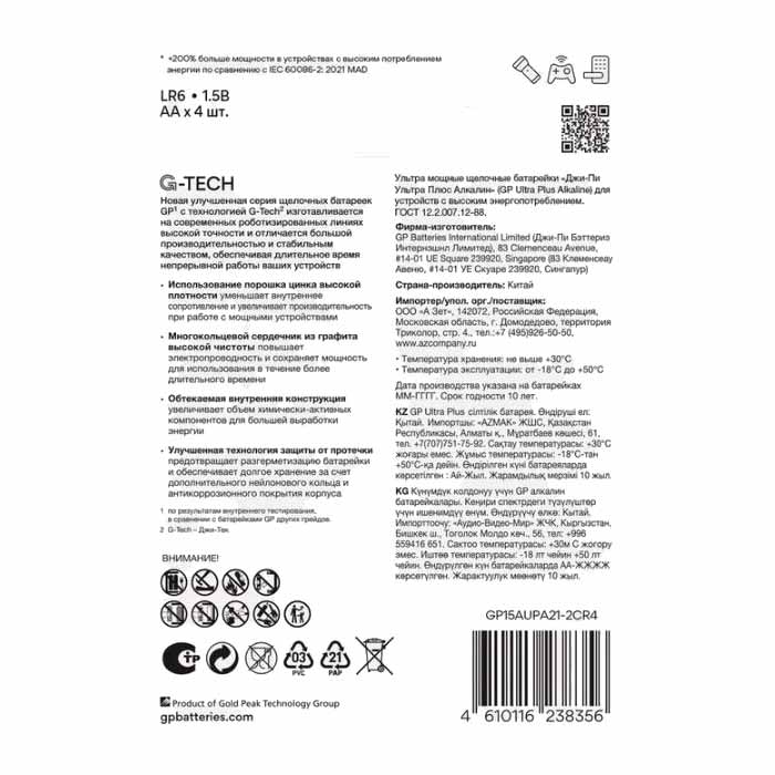 Серия GP Ultra Plus Alkaline G-TECH, обладает отличием от аналогов имея преимущества: