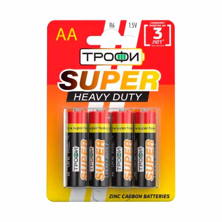 Батарейки Трофи R6 Super Heavy Duty Zinc BL4 имеют емкость 600 mA h