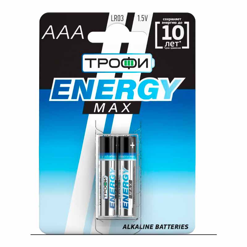 Батарейки Трофи LR03 Energy Max Alkaline BL2 имеют емкость 1100 mA h