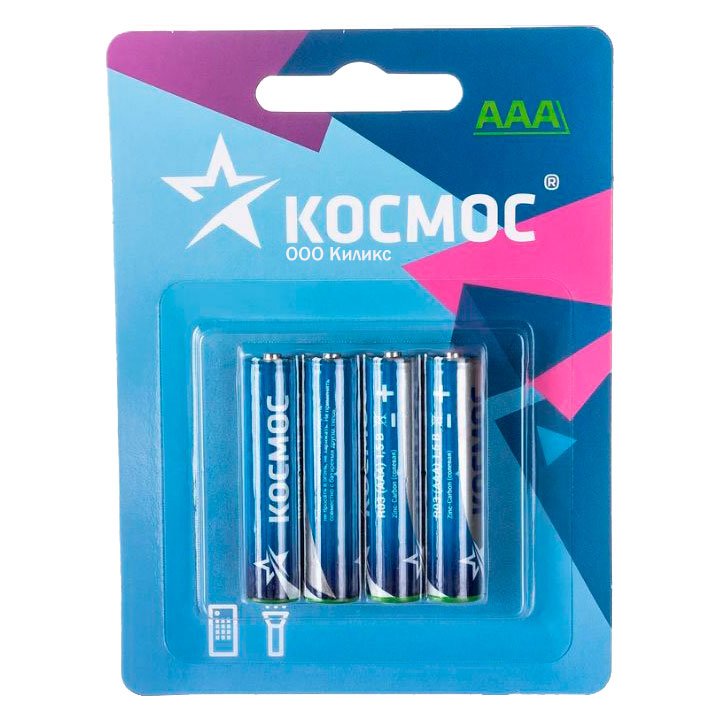 Батарейки Космос R03 Zinc Carbon KOCR034BL BL4 имеют емкость 450 mA h