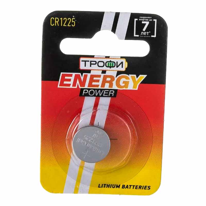 Батарейки Трофи CR1225 Energy Power Lithium BL1 имеют емкость 50 mA h