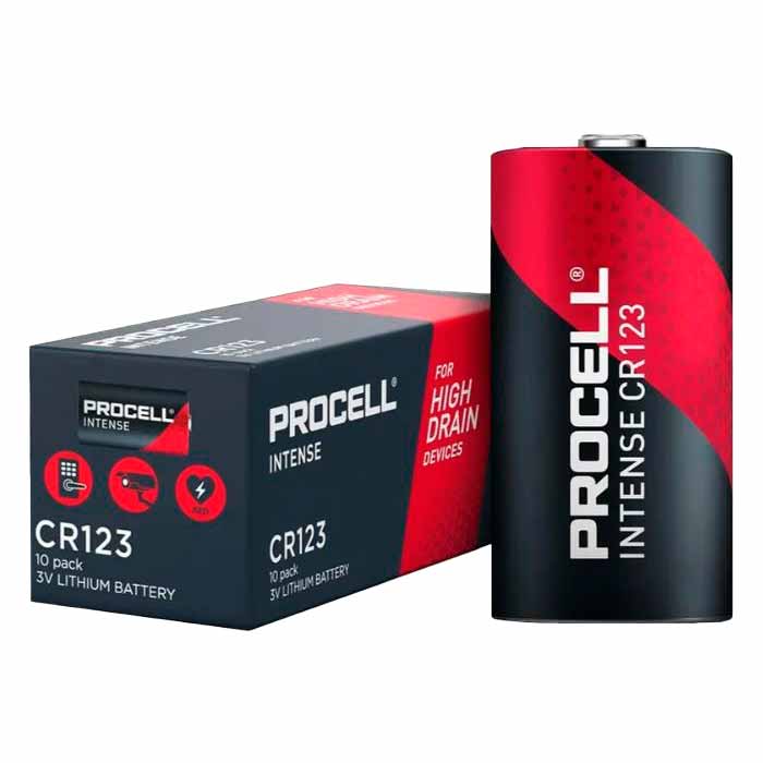 Батарейки Duracell CR123A Procell Intense BOX10 имеют емкость 1550 mA h