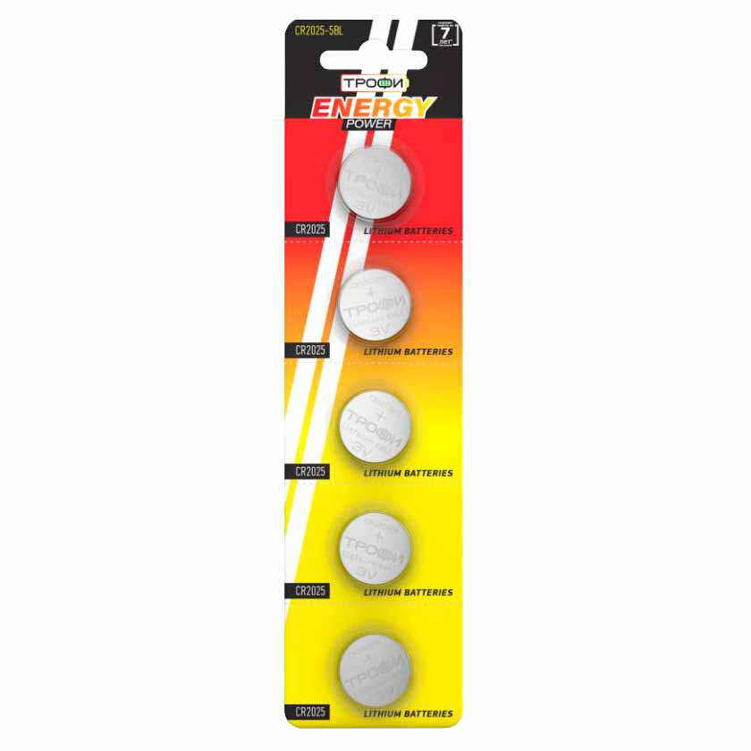 Батарейки Трофи CR2025 Energy Power Lithium BL5 имеют емкость 150 mA h