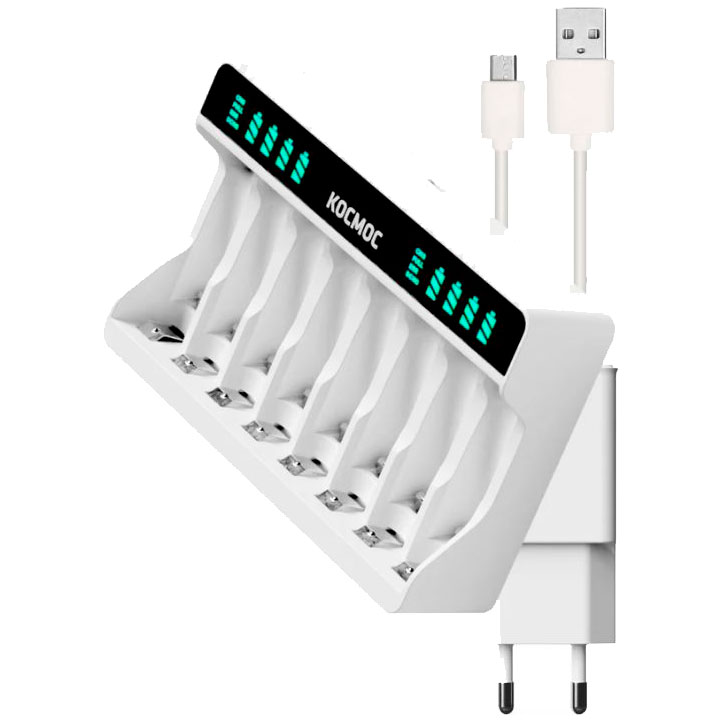 Зарядка Космос КОС520 на 8 слотов способна быстро и своевременно зарядить Ваши аккумуляторы.